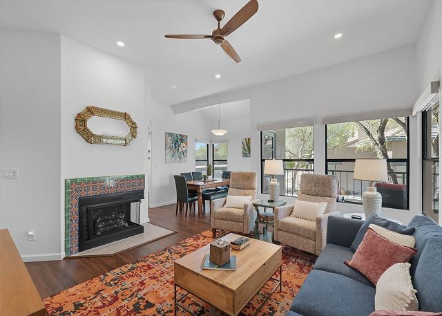 combination tub/shower, king, shower, tub, twin/ single, churches, library, restaurants, Satellite / Cable, Television, Air Conditioning, Clothes Dryer, Fireplace, Fitness Room / Equipment, Hair Dryer, Heating, Internet, Iron & Board, Linens Provided, Living Room, Parking, Towels Provided, Washing Machine, Desk, Wifi, Free Wifi, Wifi Speed 100+ Mbps, Coffee Maker, Dishes & Utensils, Dishwasher, Kitchen, Microwave, Oven, Refrigerator, Stove, Toaster, Dining Table, bird watching, photography, scenic drives, sight seeing, walking, fitness center, groceries, hospital, medical services, Golf Course View, Mountain, Mountain View, Balcony, Golf, Communal Pool, Heated Pool, Hot Tub, cycling, golf privileges optional, hiking, mountain biking, mountain climbing, swimming, children welcome, non smoking only, pets not allowed, flexible, Outdoor lighting, Smoke detectors, Fire extinguisher, Enhanced cleaning practices, Clean with disinfectant, No-contact check-in and check-out, High touch surfaces cleaned with disinfectant, Towels and bedding washed in water that's at least 60sC/140sF